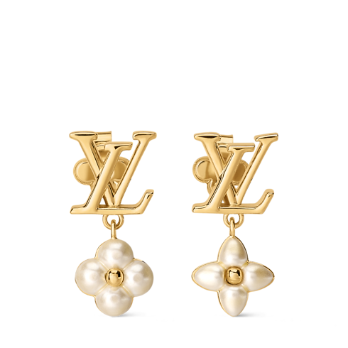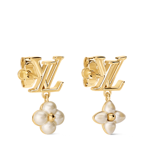 Delicately crafted in lustrous gold-coloured metal, the LV Floragram XS Earrings combine sophisticated feminine style with an original House signature. Their asymmetrical design features two different Monogram Flowers, heightened with pearlescent white resin and suspended from LV Initials studs. Ideal for adding a touch of graceful elegance to an everyday or more formal outfit.
