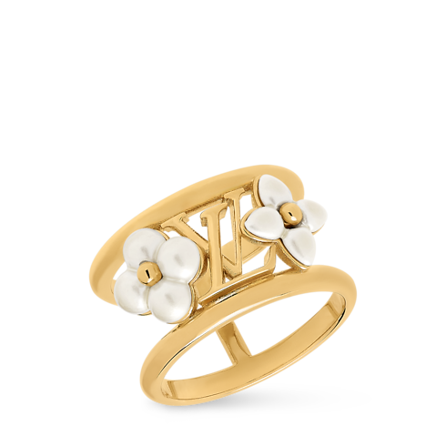 The strikingly elegant LV Floragram XS Ring was inspired by the House’s historic Monogram signature and the captivating beauty of mother-of-pearl. Its creative openwork design features a gold-coloured metal band adorned with the iconic LV Initials plus two different Monogram Flowers enhanced with radiant pearlescent resin. An eye-catching, feminine ring, perfect for everyday wear or special occasions.