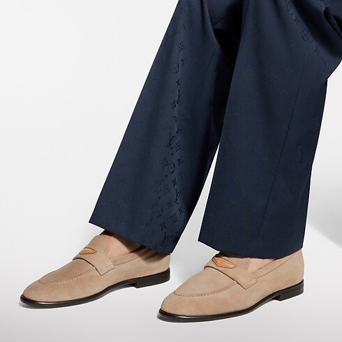 Crafted from suede calf leather, the LV Gent Loafers have an exceptionally soft, supple feel, the result of both their fine material and their traditional sacchetto construction. The straps on the uppers are embellished with natural leather inserts, which are embossed with the LV Initials and accented with yellow stitching, recalling the House's Leather Goods.