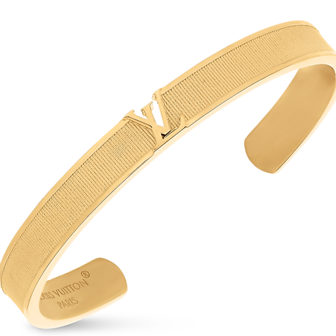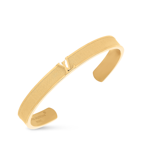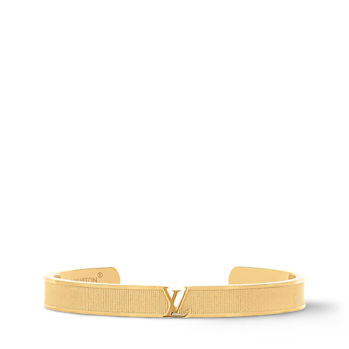 Crafted in lustrous gold-toned metal, the LV Initials Bracelet elevates any look with a touch of timeless signature elegance. Its chunky band showcases the House’s famous initials with an intriguing openwork effect. Easy to wear for all occasions, this eye-catching bracelet makes a bold style statement.