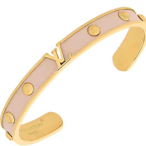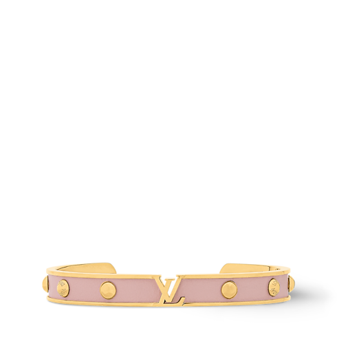 The striking design of the LV Initials Bracelet offers a creative variation on an iconic Louis Vuitton signature. Crafted in gold-toned metal, its studded band is lined with colourful leather, accented by the House’s initials with an original openwork look. Worn alone or stacked, this sophisticated bracelet adds a touch of timeless chic to any outfit.