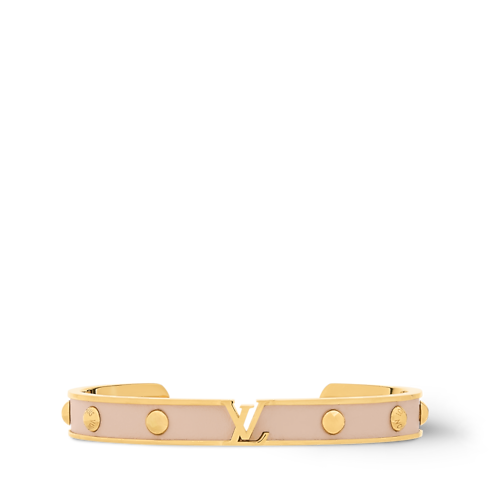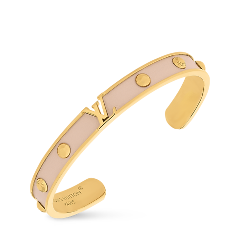 The striking design of the LV Initials Bracelet offers a creative variation on an iconic Louis Vuitton signature. Crafted in gold-toned metal, its studded band is lined with colourful leather, accented by the House’s initials with an original openwork look. Worn alone or stacked, this sophisticated bracelet adds a touch of timeless chic to any outfit.