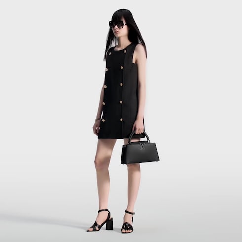 The iconic LV Isola Collection welcomes the LV Isola Sandals, crafted from supple calf leather. Distinguished by the oversized LV Circle signature on the upper, this elegant style comes on a high block heel that is also covered in leather. This model is fastened around the ankle by a slender strap with a delicate, gold-colour buckle.