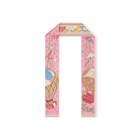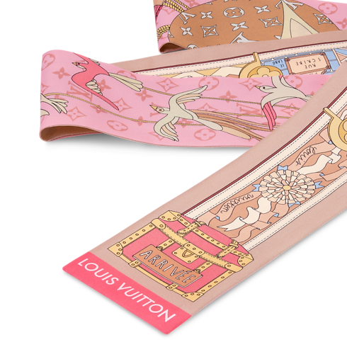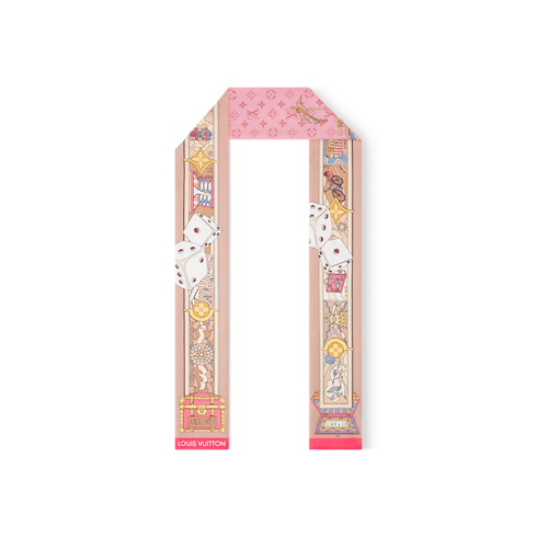 With its playful, intricate design, the LV Journey silk bandeau combines fine craftsmanship with a subtle House signature. Its strikingly creative print mixes Monogram motifs with evocations of travel and games, such as trunks, bags and dice. At once contemporary and timeless, it is destined to become an iconic accessory.