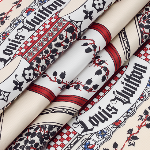 Created to accompany the Spring-Summer 2026 Cruise Collection, the LV Medieval Flowers square offers a subtle blend of contemporary appeal and historical inspirations. Printed on pure silk, its artistic design combines Monogram motifs with thorny flowers and thistles, symbols of both strength and femininity. A Louis Vuitton signature in medieval-style lettering adds an evocative House touch.
