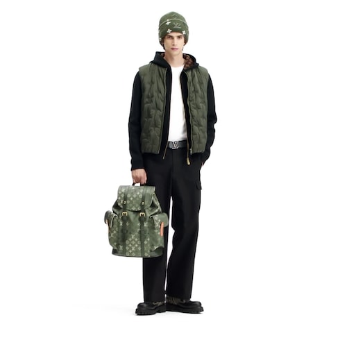 The LV Remix Combat Boots combine Monogram grained calf leather with smooth leather trims. This stylish model, which blends fashion with functionality, is notable for its rich signature details: the leather pull at the back references Louis Vuitton Leather Goods, while the eyelets are shaped like Monogram Flowers. A chunky yet lightweight rubber outsole completes this model.