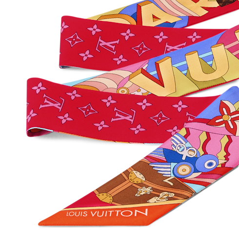 The all-silk LV Wonderland BB Bandeau is a colourful ode to creativity and craftsmanship. Its eye-catching pattern depicts a whimsical futuristic landscape accented with Monogram Flowers and iconic Louis Vuitton luggage creations. Outsized letters with a striking 3D effect spell out the House’s name, adding an original signature to this elegant contemporary accessory.