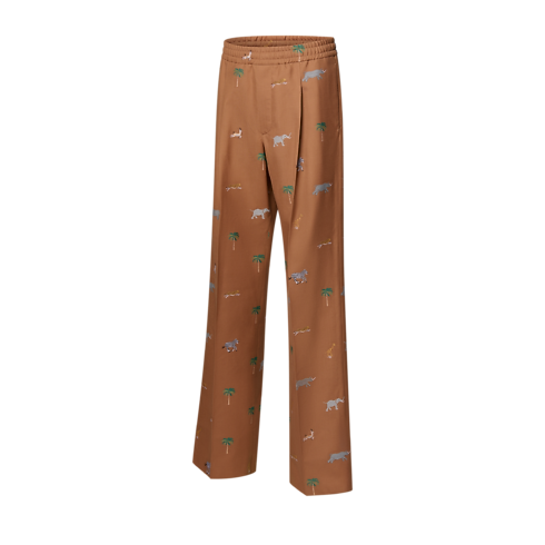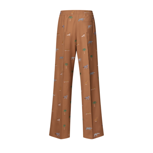 These caramel-coloured trousers are adorned with the Spring-Summer 2026 Show’s iconic LV x The Darjeeling Limited motif, which is woven all over the fine wool suiting in a textured fil coupé jacquard. Front pleats and a drawstring waist create a fluid silhouette, which can be paired with a matching tailored jacket for an effortlessly elegant look.