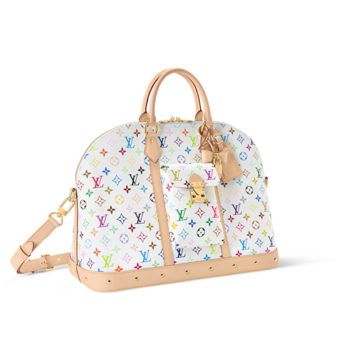 The Alma travel bag’s distinctive silhouette embraces a pop-art spirit in Monogram Multicolore coated canvas. Originally created by Takashi Murakami for the House in 2003, this multi-hued variation of the Monogram motif includes 33 distinct colours. Lined in cream-coloured microfibre, it is finished with a natural cowhide leather trim and gold-colour hardware, including riveted accents.