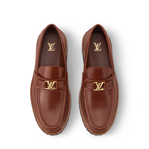 This version of the Major Loafers is crafted from aged calfskin, creating an elevated vintage look, in which the natural beauty of the leather shines through. A trim in grained Epi leather and a gold-colour LV Initials accessory on the hand-stitched vamps sign this model, which comes on chunky yet lightweight rubber outsoles.