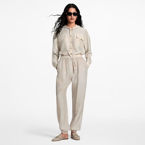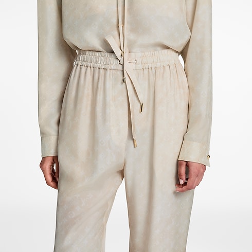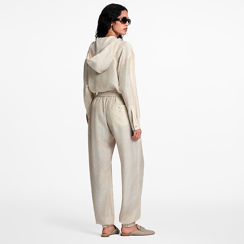 These sporty jogging trousers are elegantly elevated in fluid silk featuring a subtle allover print of the Monogram motif in a dreamy finish. The casual straight-leg silhouette is elasticised at the waistline and ankles for a comfortable fit, while breezy drawstrings emphasise the relaxed clothing style. Complete with a buttoned patch pocket at the back.