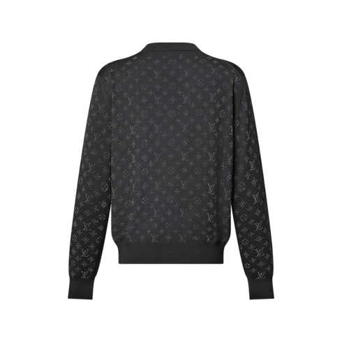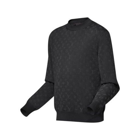 Crafted from a fine merino wool knit, this elegant black crewneck is a relaxed yet sophisticated choice for evenings. It is embellished with a glittering all-over tone-on-tone Monogram motif, applied on top of the knit with a delicate finish. The shimmering design brings a chic signature accent to an ensemble for end-of-year celebrations.