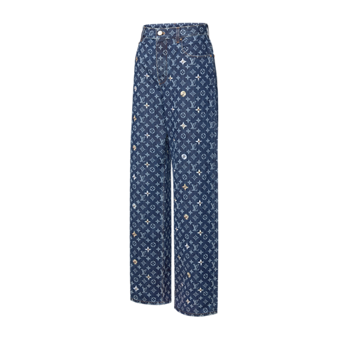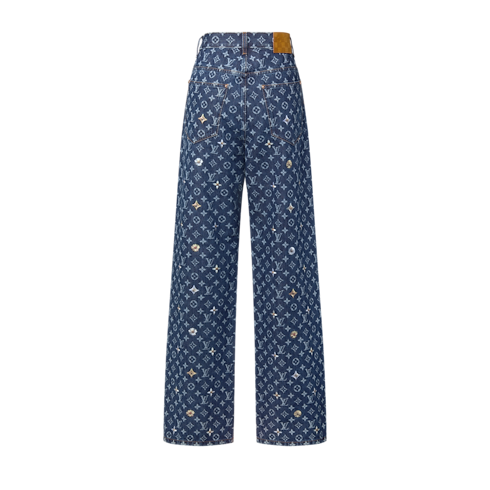 These graphic denim skate trousers bring a joyful signature accent to spring looks. The classic indigo base is adorned with a printed all-over Monogram motif, richly worked with embroidered flowers creating a 3D effect. This meticulously crafted piece reflects Louis Vuitton savoir-faire with its elevated take on this collection’s floral notes.