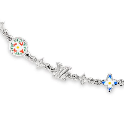 The Monogram Flower Chain Belt is the perfect product for cllients looking for a signature piece with a touch of colour. The delicate link is composed of Initials and Flower charms from the iconic Monogram of the House, gently dotted with bloom-inspired colours. Its silver-colour construction achieves a versatility that endures and adapts.
