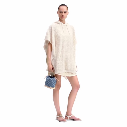 This poncho has effortless summer appeal in a long, loose shape that can be easily slipped over a summer look. It is crafted from a cotton-wool blend in a plush towelling finish, which is discreetly signed all-over with Monogram Flowers in relief. A drawstring hood, a generous kangaroo pocket and ribbed edges introduce a subtly sporty feel.