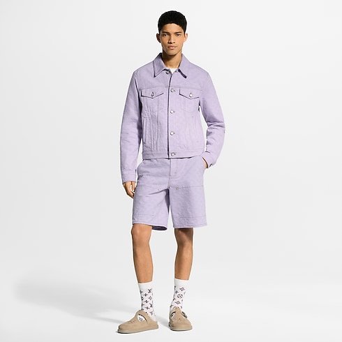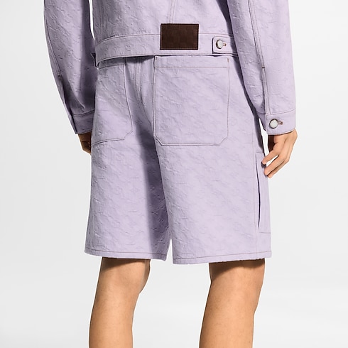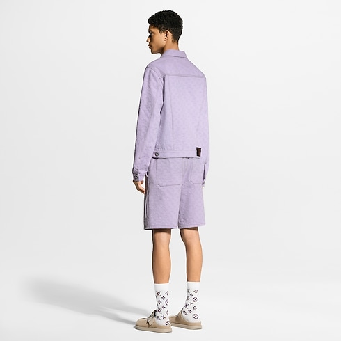 These denim workwear shorts are in a joyful lilac colour that captures the cheerful mood of spring. They are richly crafted with a jacquard Monogram motif that has been overdyed for a softly textured look, while a pearly button and Monogram Flower rivets add chic finishing touches. Pair with a matching jacket for an eye-catching summery clothing set.