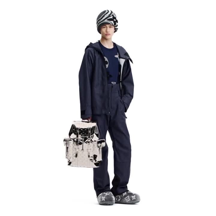 This short-sleeved crewneck is crafted from an organic cotton blend in rich dark blue tones, featuring a graphic intarsia motif with scaled-up LV and Monogram Flower signatures. Louis Vuitton craftsmanship is evident in the subtle tonal contrasts and stitch variations. This casual clothing style transitions effortlessly between outdoor and everyday looks, bringing a bold signature accent to any outfit.