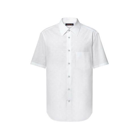 This short-sleeved classic shirt is a fresh choice for warm weather, crafted from white organic cotton with a tone-on-tone Monogram jacquard. An LV top button and a woven LV and Monogram Flowers label adorn the placket. This versatile piece of clothing can be paired with a matching Monogram Napolitana suit for a refined play of layers.