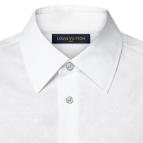 This short-sleeved classic shirt is a fresh choice for warm weather, crafted from white organic cotton with a tone-on-tone Monogram jacquard. An LV top button and a woven LV and Monogram Flowers label adorn the placket. This versatile piece of clothing can be paired with a matching Monogram Napolitana suit for a refined play of layers.