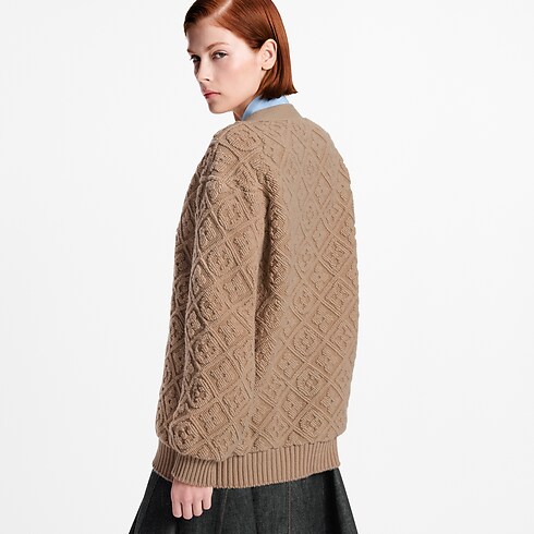 This cardigan is cosy and contemporary in a casual oversized fit spun from a sumptuous wool-cashmere blend in a plush towelling finish signed all over with Monogram Flower accents in relief. Chunky ribbed hems frame the look, while the front fastening is finished with playfully mismatched metallic Monogram Flower buttons for a spirited final signature.