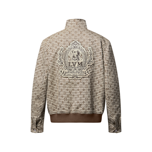This elegant Harrington blouson is inspired by the unique sartorial style of the English dandy dog walker. It reinvents a heritage glen plaid with a discreet all-over Monogram in elegant beige tones, while a beaded LV patch and a heraldic LV Dog patch adorn the chest and back. This everyday piece of clothing lends itself to both preppy and fashion-forward styling.
