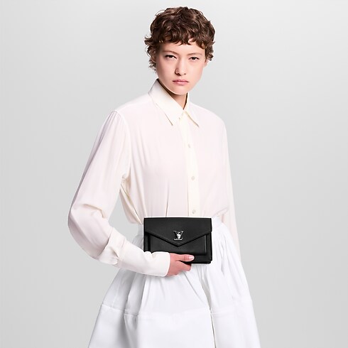 The Pochette Mylockme Chain is a stylish way to carry a smartphone and other essentials. Crafted from supple calf leather, this pouch reprises the key signatures of the Lockme line: the envelope-style flap, front pocket and LV Initials clasp. It can be carried over the shoulder or across the body on its long chain.
