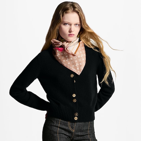 Inspired by Valentine’s Day, the Neverfull Of Love square is a love story against the background of the classic My Neverfull designs. Delicately printed on pure silk, its enchanting pattern combines bag straps with feminine emblems like flowers and love letters. A Monogram border and a vintage trunk patch add a subtle heritage touch to this exceptional accessory.