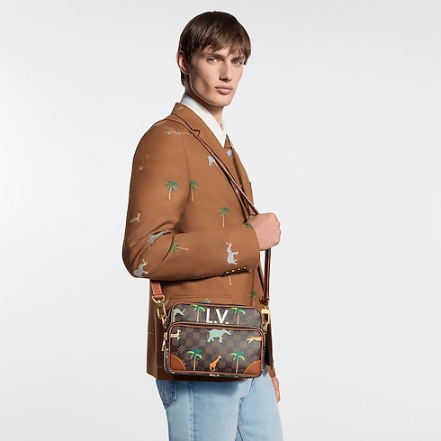 The Nil MM cross-body bag channels retro appeal with its spacious front zipped pocket and Damier Heritage coated canvas, animated by wild animals charging through palm trees. Part of The Darjeeling Limited Collection, it includes a removable, adjustable strap and a detachable top handle for versatile carry.