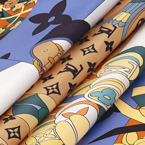The elegant, colourful Picnic square is a veritable masterpiece of contemporary design and craftsmanship. Printed on silk, its meticulously detailed pattern features a historic Louis Vuitton luggage creation: a Monogram picnic trunk, surrounded by enchanting birds, flowers and cakes. This piece is an artistic ode to the House’s trunk-making heritage and the pleasures of an outdoor feast in springtime.