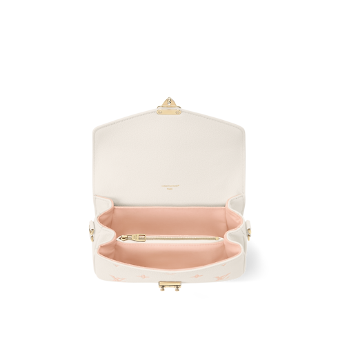 Reimagined in a Milk White and Peach Pink two-tone palette, this edition of the Pochette Métis East West pouch is a sleek choice for the weekend. It is crafted from signature Monogram Empreinte leather elevated with light gold-colour hardware, including the House’s iconic S-lock. There are three compartments to store belongings, plus a zipped pocket on the outside.
