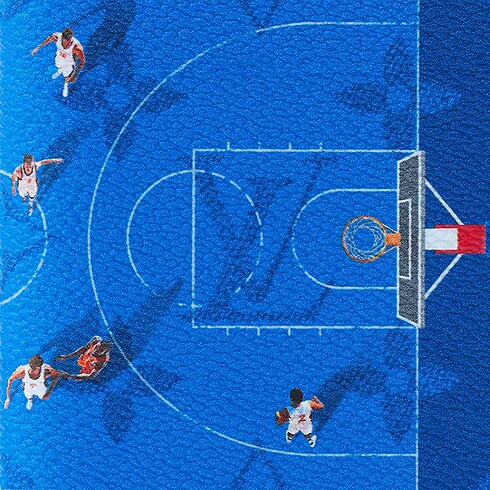 Fashioned from rich blue Monogram coated canvas, this Pocket Organiser compact wallet features a playful aerial view of basketball players in motion. Small yet functional, it includes three card slots and five interior pockets, plus a flat pocket on the back, offering everyday utility in a bold, sport-inspired design.
