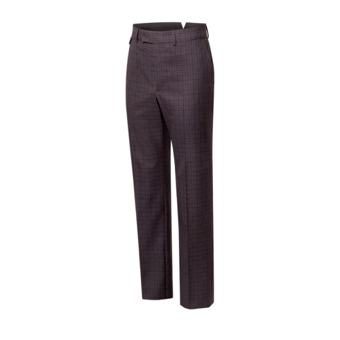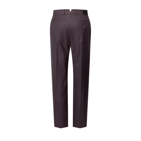 These elegant tailored trousers are crafted from certified wool featuring a checkered Monogram Vichy jacquard in warm Burgundy Red tones. An LV-embroidered triangular tab accents the right hip, while a Marque L.Vuitton Déposée label signs the rear waistband. These trousers can be paired with a softly structured single-breasted jacket to make a contemporary daytime suit.