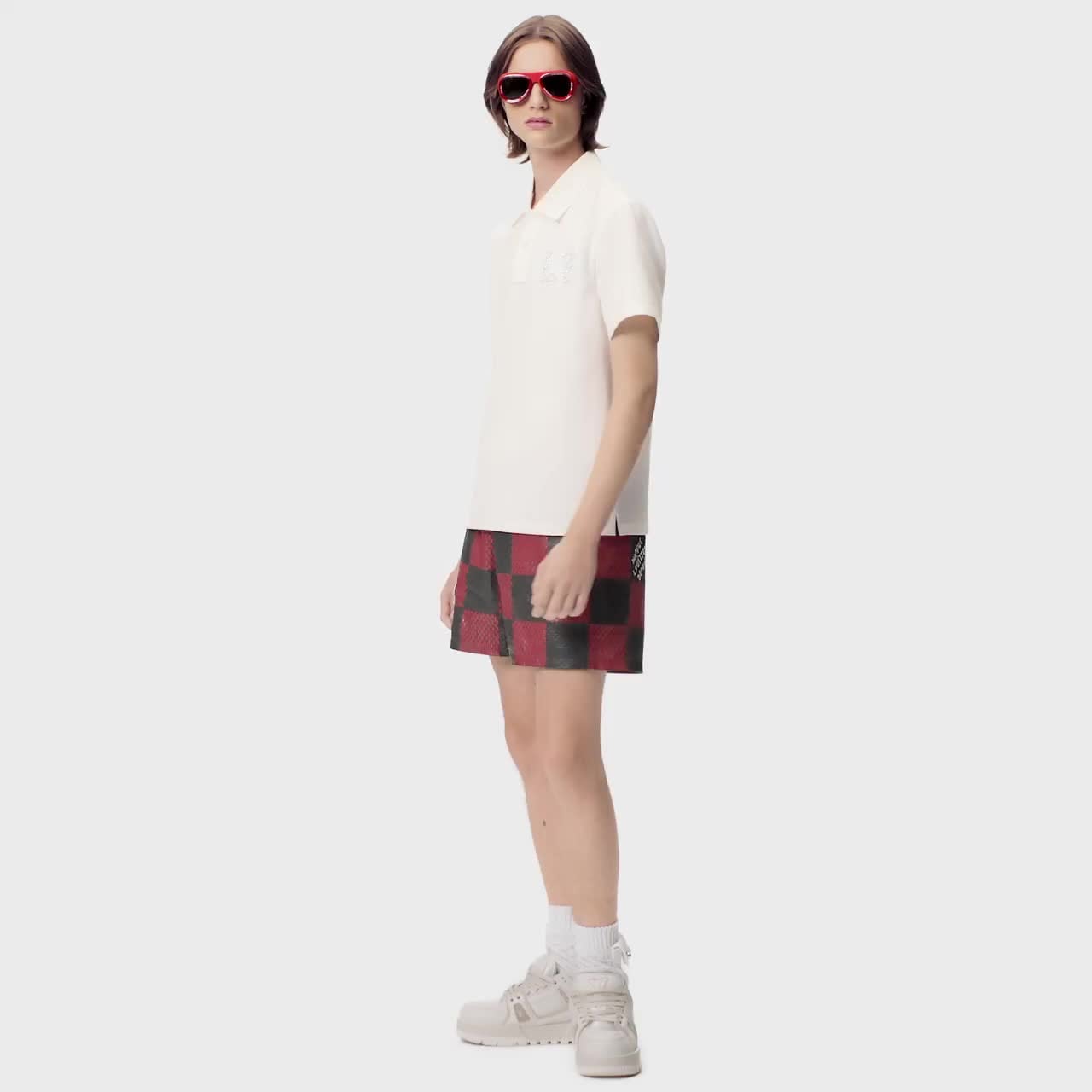 This short-sleeved polo shirt with a honeycomb piquet weave draws on the dandy universe of the Spring-Summer 2024 Show. It is ennobled with an ornamented LV patch on the chest embroidered with sequins and pearls. This is an easy piece for elevating a casual look with a twist of chic.