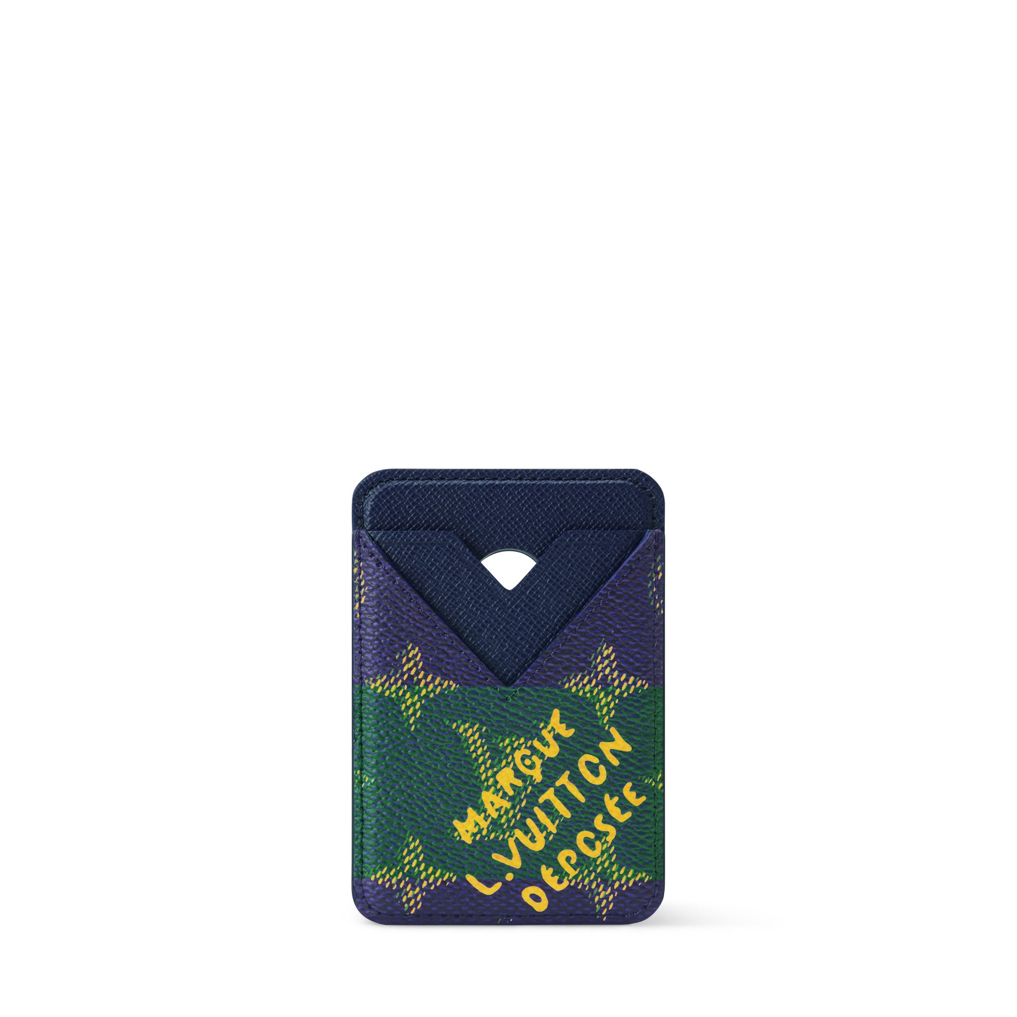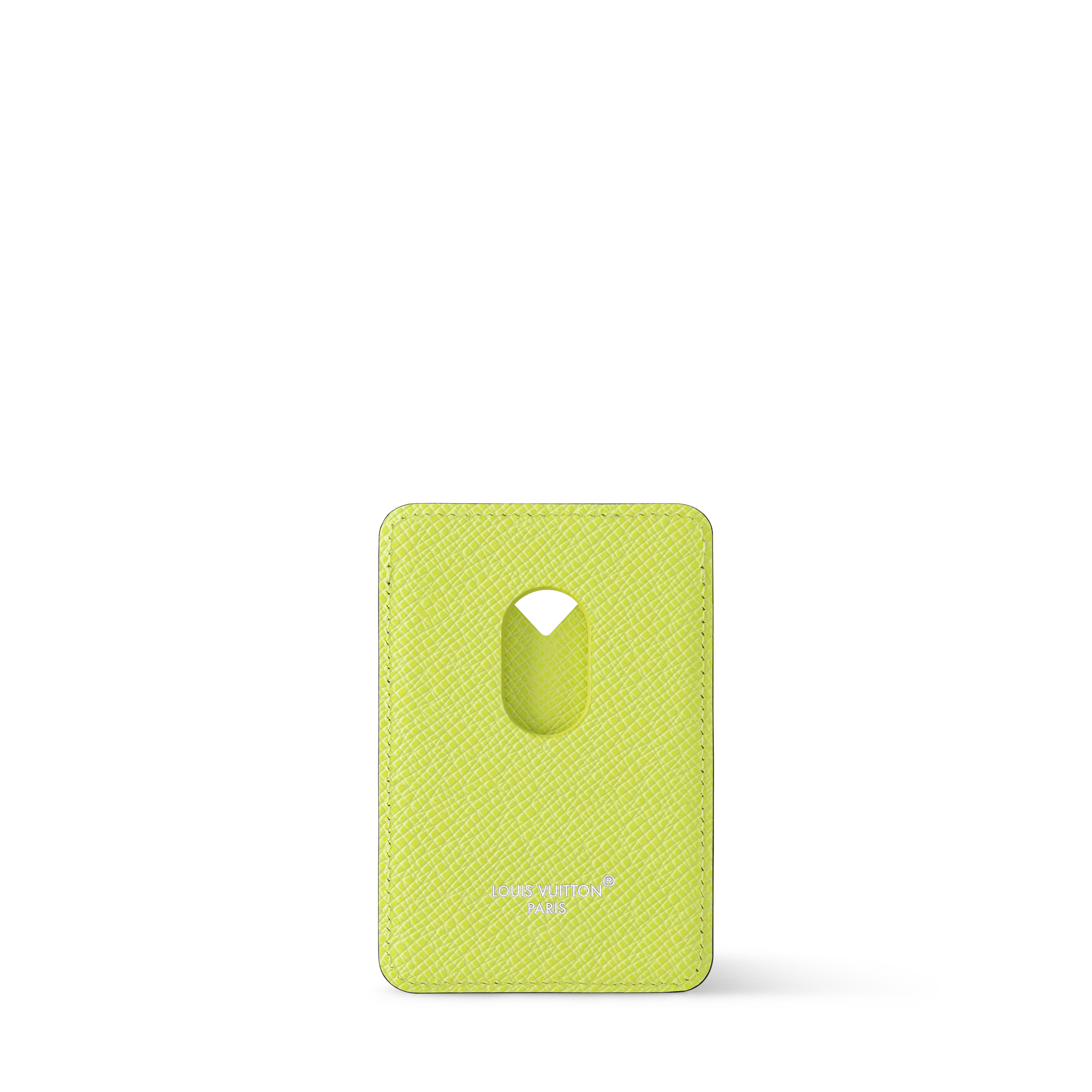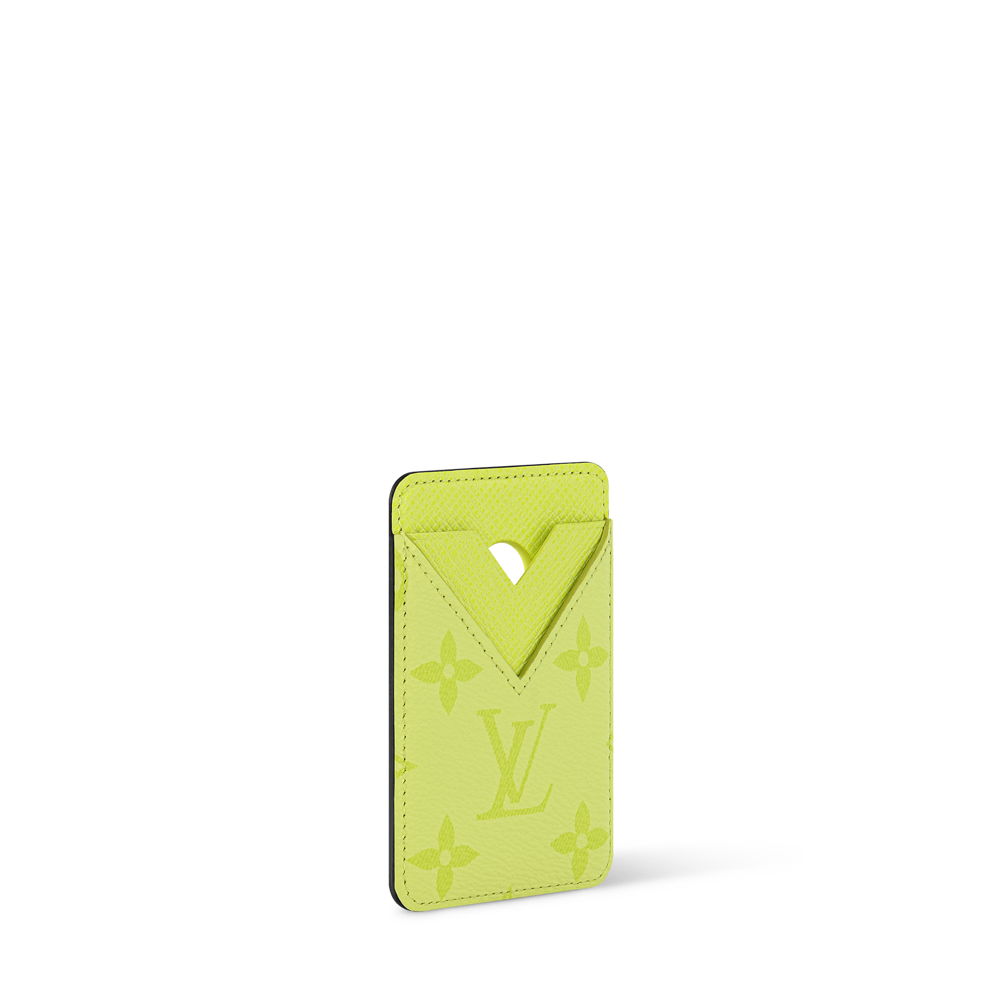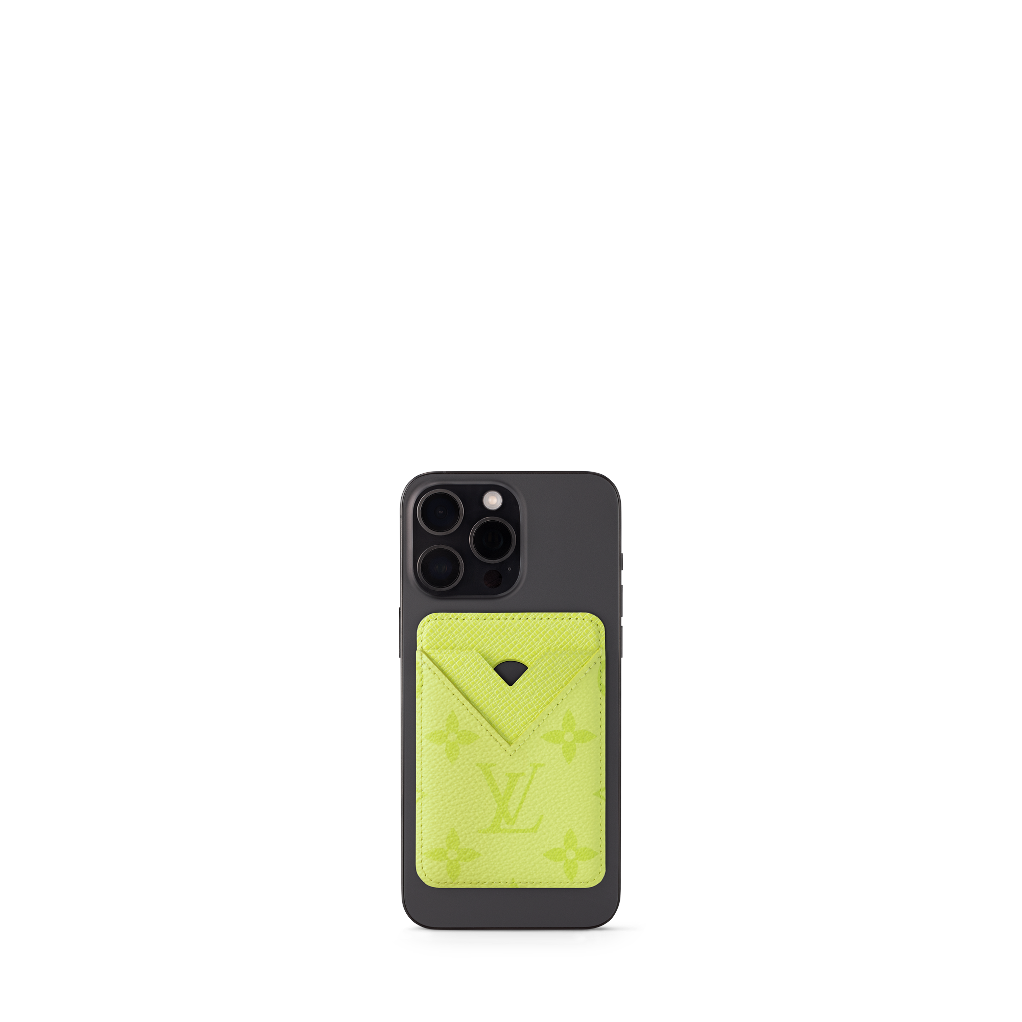 The Porte-Cartes Magnet Card Holder includes an integrated magnet to easily attach to any iPhone equipped with MagSafe technology. Crafted from Monogram coated canvas and Taïga cowhide leather in a vivid colourway, it adds a dash of colour to an iPhone. The V-shaped card slots are ideal for credit and travel cards.