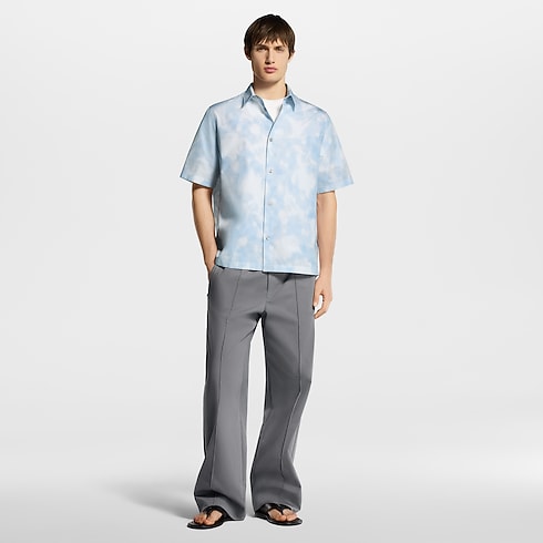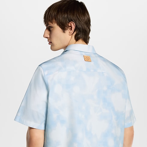 This fresh and breezy short-sleeved shirt is crafted from light cotton with a printed LV Flower X-Ray motif in pale blue and white tones. Printed over a Damier base, the graphic floral motif incorporates discreet LV and Monogram Flower signatures. This signature clothing piece can be layered under a collarless jacket in the same motif.