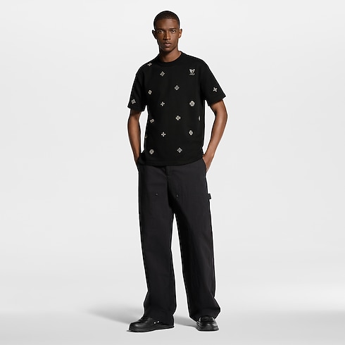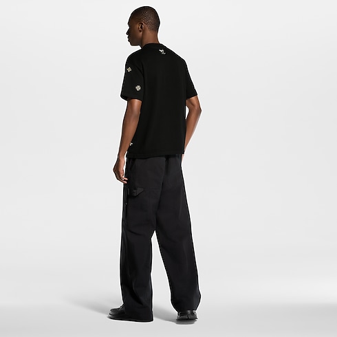 Crafted from technical ripstop cotton, these black cargo trousers are light and breathable for summer in the city. Utilitarian details include above-the-knee pockets embellished with discreet Monogram Flower rivets and a grosgrain Monogram hammer loop attached to the back-left pocket. Paired with a matching single-breasted jacket, these trousers make a modern set.