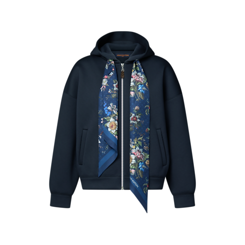 An elegant twist on a timeless clothing staple, this hoodie is cosy and comfortable in plush double-face viscose jersey, complete with two practical side pockets. The drawstring of the hood is playfully reimagined with a sophisticated floral silk scarf peppered with signature accents, while the zip is fastened with a Monogram canvas pull.