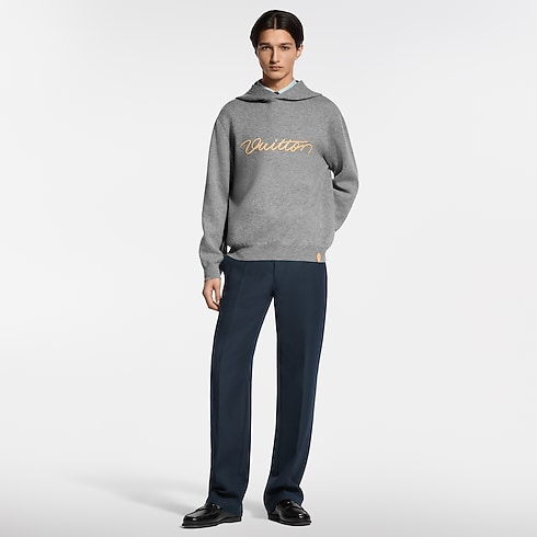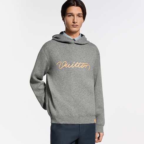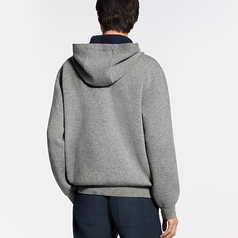 Comfort and style are united in this heathered grey hoodie, crafted from expertly knitted double-face jersey, with cosy wool on the inside and beautifully soft cashmere on the exterior. A VVN leather cursive Vuitton signature lends a graphic accent to the chest in a nod to the House’s leather goods heritage.