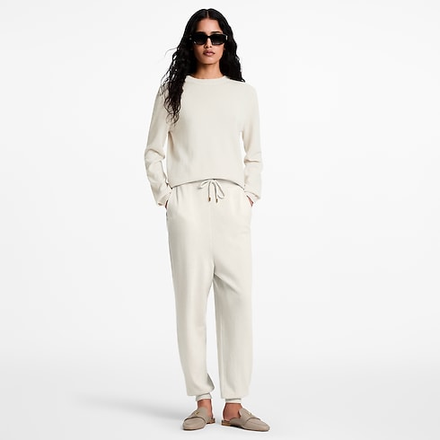 This jumper is quietly elevated in a sumptuous cashmere knit in a versatile shade. It is crafted in a comfortable crew-neckline shape with ribbed hems for a neat finish. The hem is discreetly detailed with an embroidered LV Circle signature for a subtle House touch.
