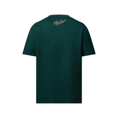 This collection’s Westminster dog walkers inspire this playfully regal T-shirt in rich green tones. Crafted in organic cotton piqué with a textured Damier jacquard, it is adorned with embroidered golden signatures, including an ornate LV Dog coat of arms on the chest. Perfect for end-of-year festivities, this clothing piece brings a sophisticated accent to a casual silhouette.