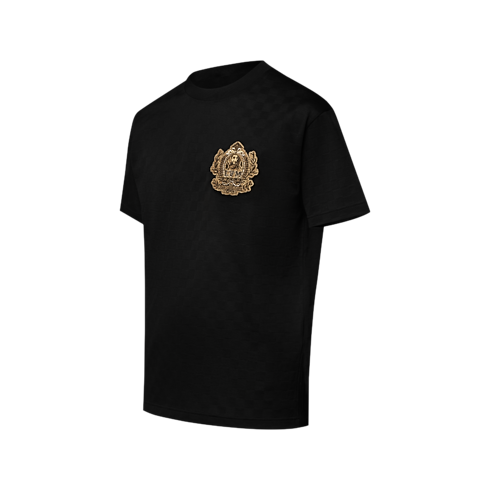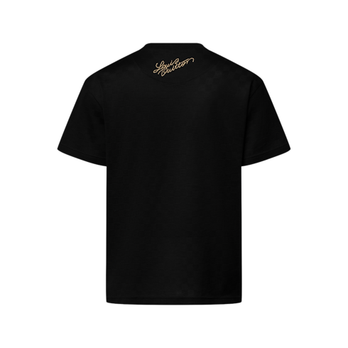 This collection’s Westminster dog walkers inspire this playfully regal chic black T-shirt. Crafted in organic cotton piqué with a textured Damier jacquard, it is adorned with embroidered golden signatures, including an ornate LV Dog coat of arms on the chest. Perfect for end-of-year festivities, this piece brings a sophisticated accent to a casual silhouette.