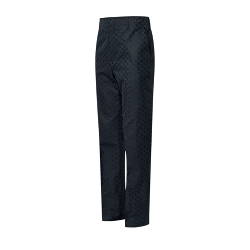 These chic black tailored cigarette trousers cut an elegant silhouette. They are crafted from a luxurious blend of silk and cotton and embellished with a lustrous jacquard LV Fishnet motif. This sophisticated clothing piece can be worn as a suit with a matching jacket for distinguished day-to-evening occasions.