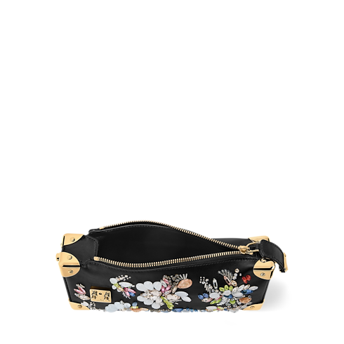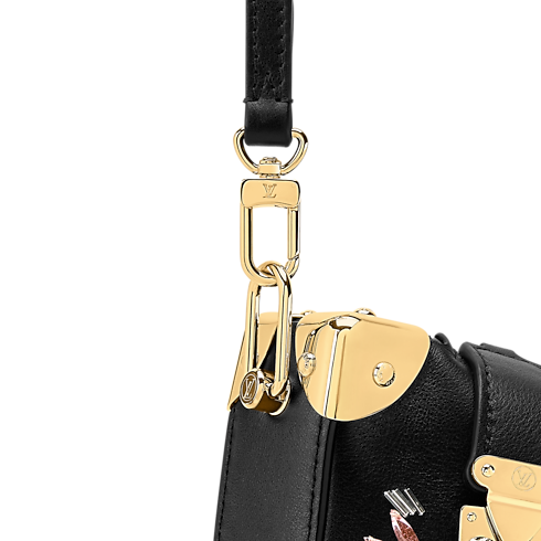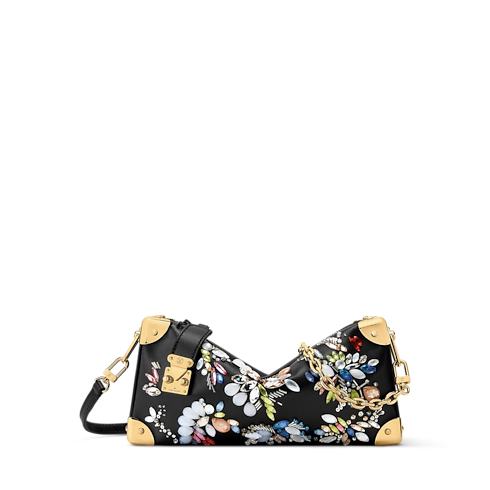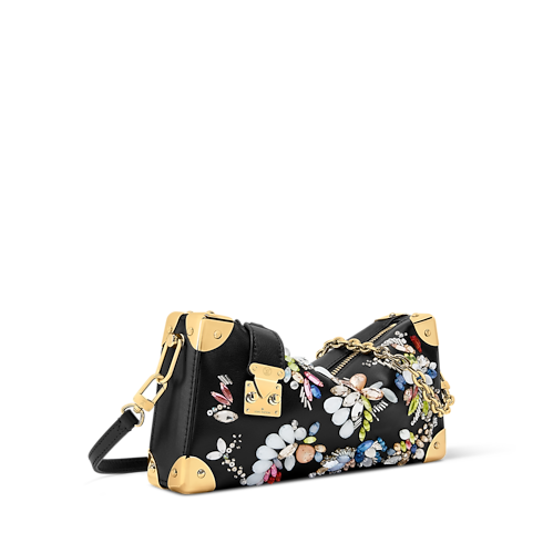 The Eden Embroideries Collection presents this striking edition of the Slim Trunk bag, which is adorned with multicoloured gems and crystals. Made from calfskin in classic black, it is trimmed with cowhide leather and elevated with gold-colour trunk corners and a signature S-lock and chain. An elegant choice for evening occasions, it can be styled with or without the longer strap.