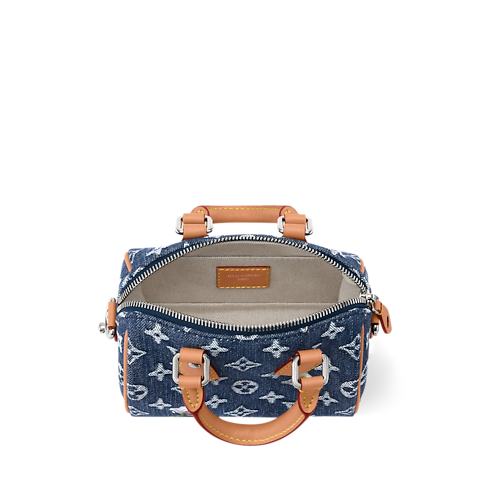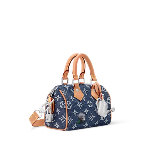 The smallest in the Speedy family, the compact Speedy 18 Bandoulière bag is made from Monogram Flowers Denim, accented with a cowhide leather trim and a metallic watering can charm. Its woven Monogram and subtle floral embroidery bring a fresh twist to classic lines. A detachable, adjustable strap allows both shoulder and cross-body carry.