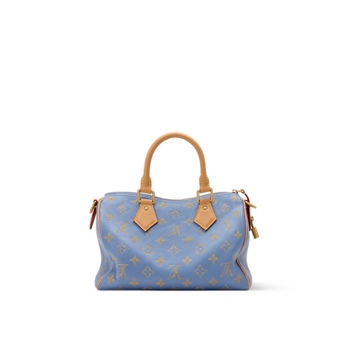 The Speedy P9 Bandoulière 25 bag shines in supple calfskin with an embroidered Monogram pattern. Inspired by the expertise of Indian embroidery, the golden-thread design requires over 420,000 stitches. Inside, Pharrell Williams’ exclusive plaque signs the piece. A removable, adjustable strap adds versatility for shoulder wear.