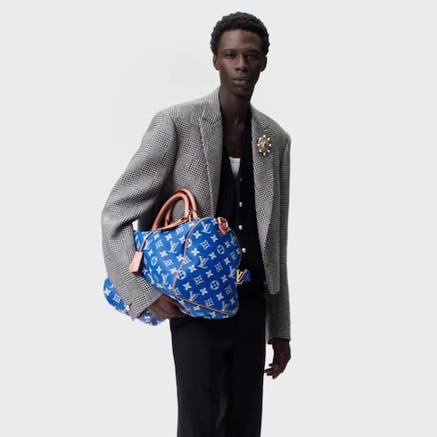 Working with naturally supple grained calfskin, Creative Director Pharrell Williams has given this Speedy P9 Monogram Leather Bandoulière 40 bag a super-soft feel. The Monogram is printed on bright leather in a high-end silk-screen technique that perfectly reproduces the almost blurry effect of Monogram printed on canvas. This Speedy is fully lined with ultra-luxurious lambskin leather.