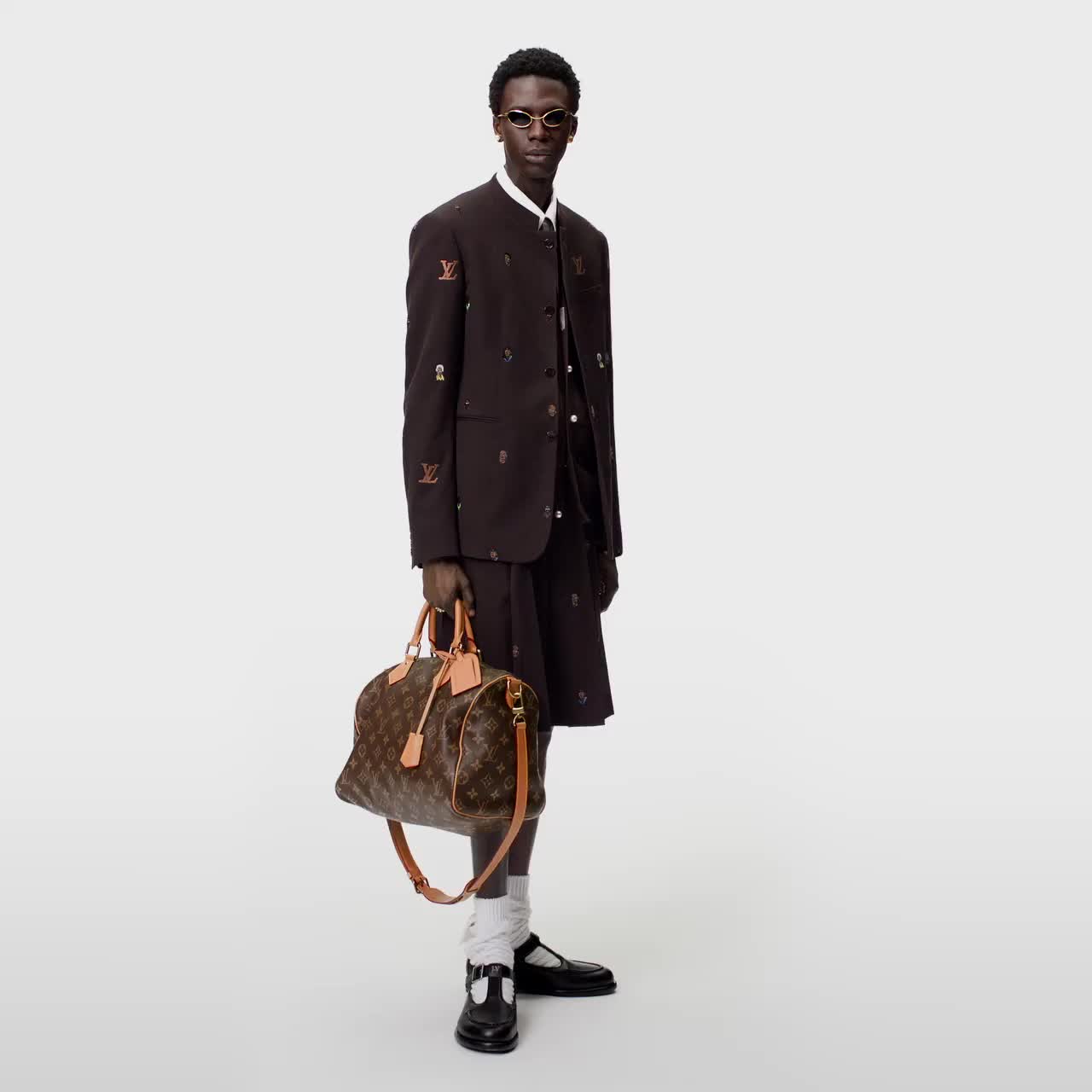 Working with naturally supple grained calfskin, Creative Director Pharrell Williams has given this Speedy P9 Monogram Leather Bandoulière 40 bag a super-soft feel. The Monogram is printed on the leather in a high-end silk-screen technique that perfectly reproduces the almost blurry effect of Monogram printed on canvas. This Speedy is fully lined with ultra-luxurious lambskin leather.