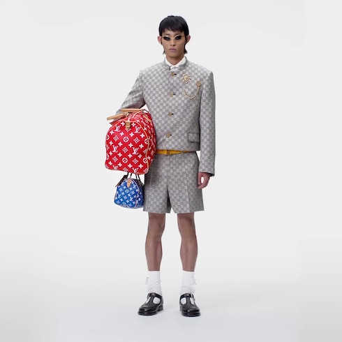 Creative Director Pharrell Williams revisits the iconic Speedy P9 Monogram Leather Bandoulière 50 bag in luxuriously soft and supple calfskin with a bold primary colourway. The Monogram is printed on the Speedy using a sophisticated silk-screen technique that reproduces the twill aspect of the Monogram on canvas, a blurry, almost hand-painted effect.