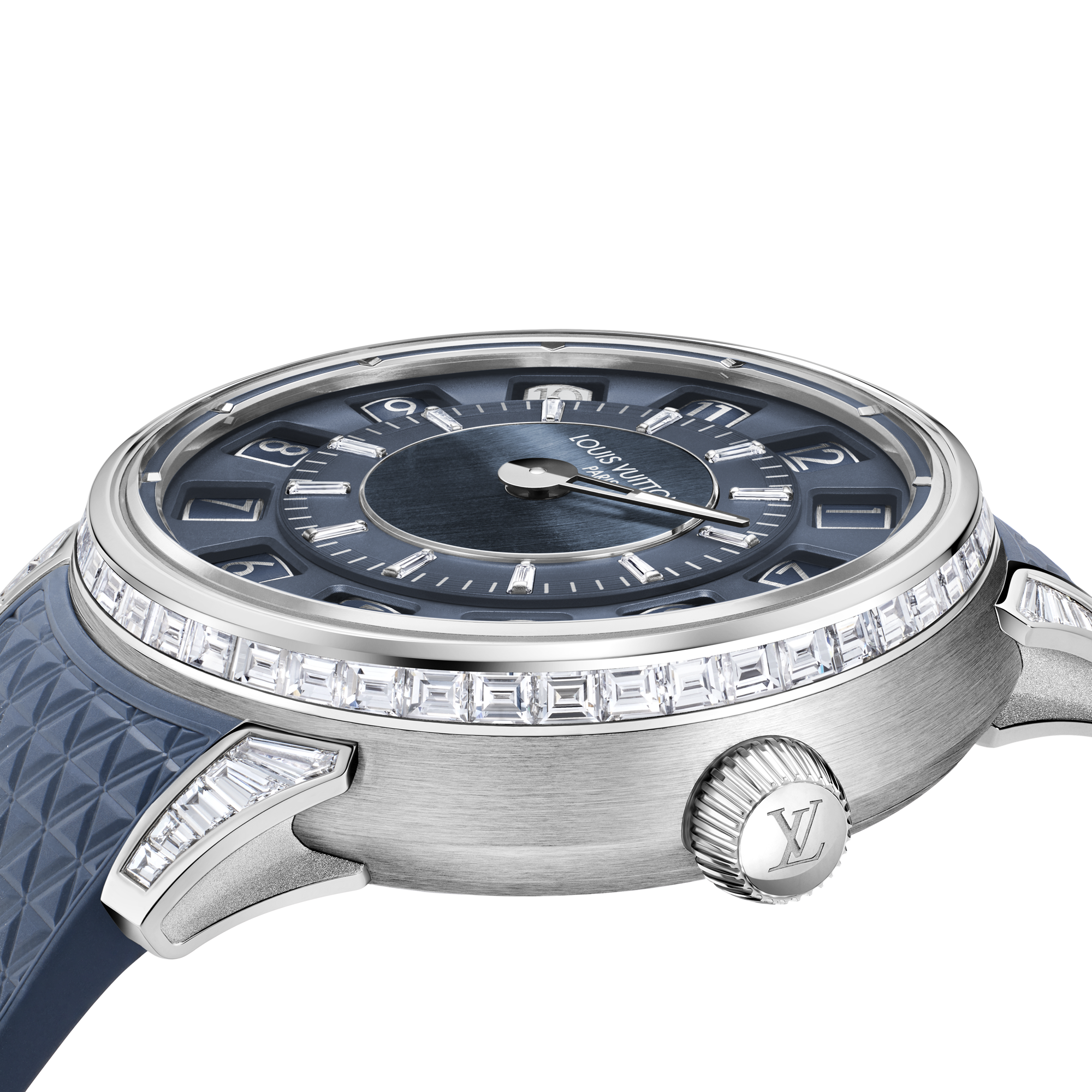 Watches - Tambour Taiko Spin Time, Automatic, 39.5 MM, White Gold, Hawk's Eye and Diamonds  Watches Watches } | LOUIS VUITTON