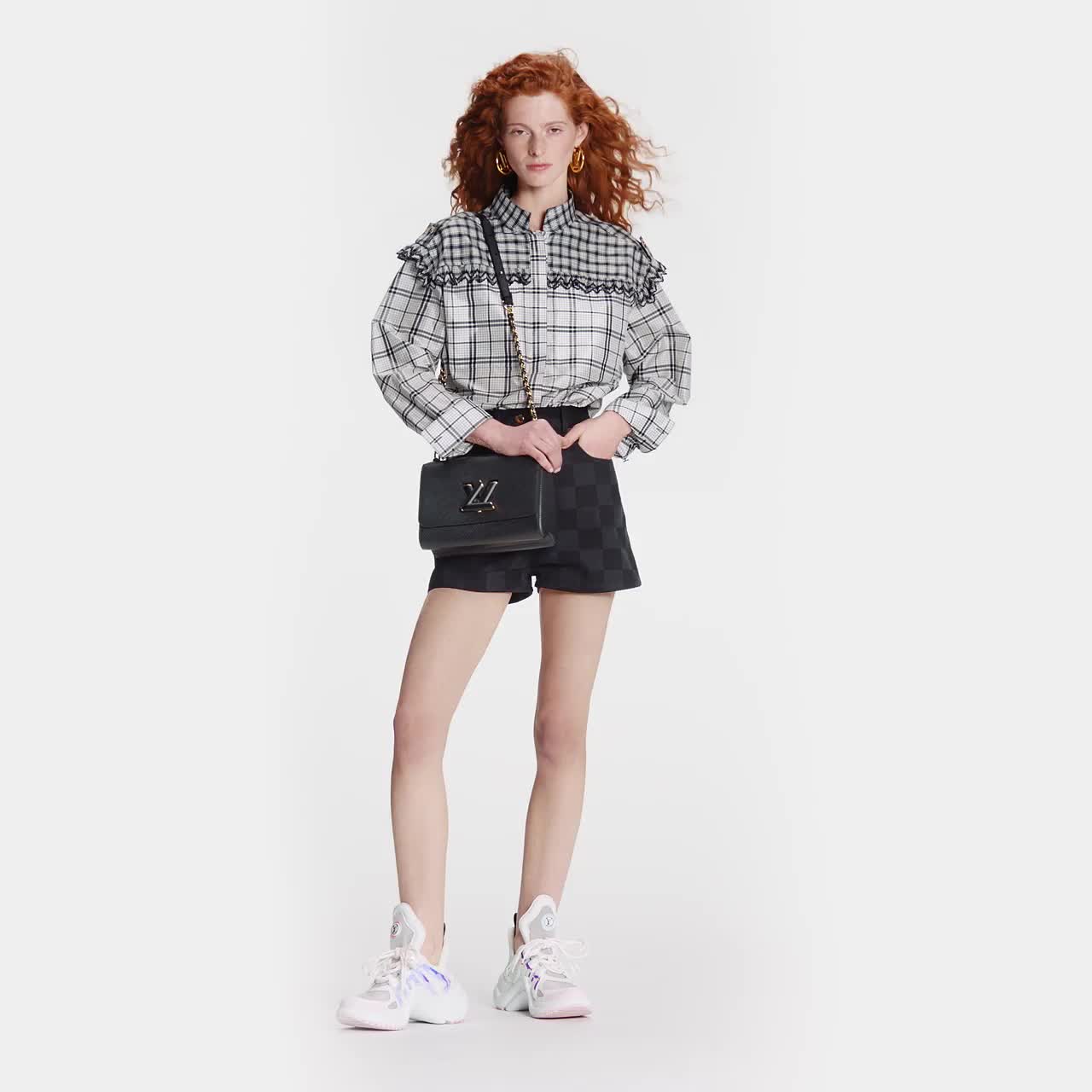 Crafted from the House’s emblematic Epi leather, the Twist MM chain bag features the now iconic LV Twist-lock. The Twist MM bag is reinterpreted in a monochromatic colourway of black on black. Fashioned from black Epi leather, the bag has an LV turn-lock finished in matte tone-on-tone lacquering. Soft leather is braided into the metallic links of the chain strap for an unexpectedly sophisticated look. An adjustable shoulder pad in leather assures comfortable carry.